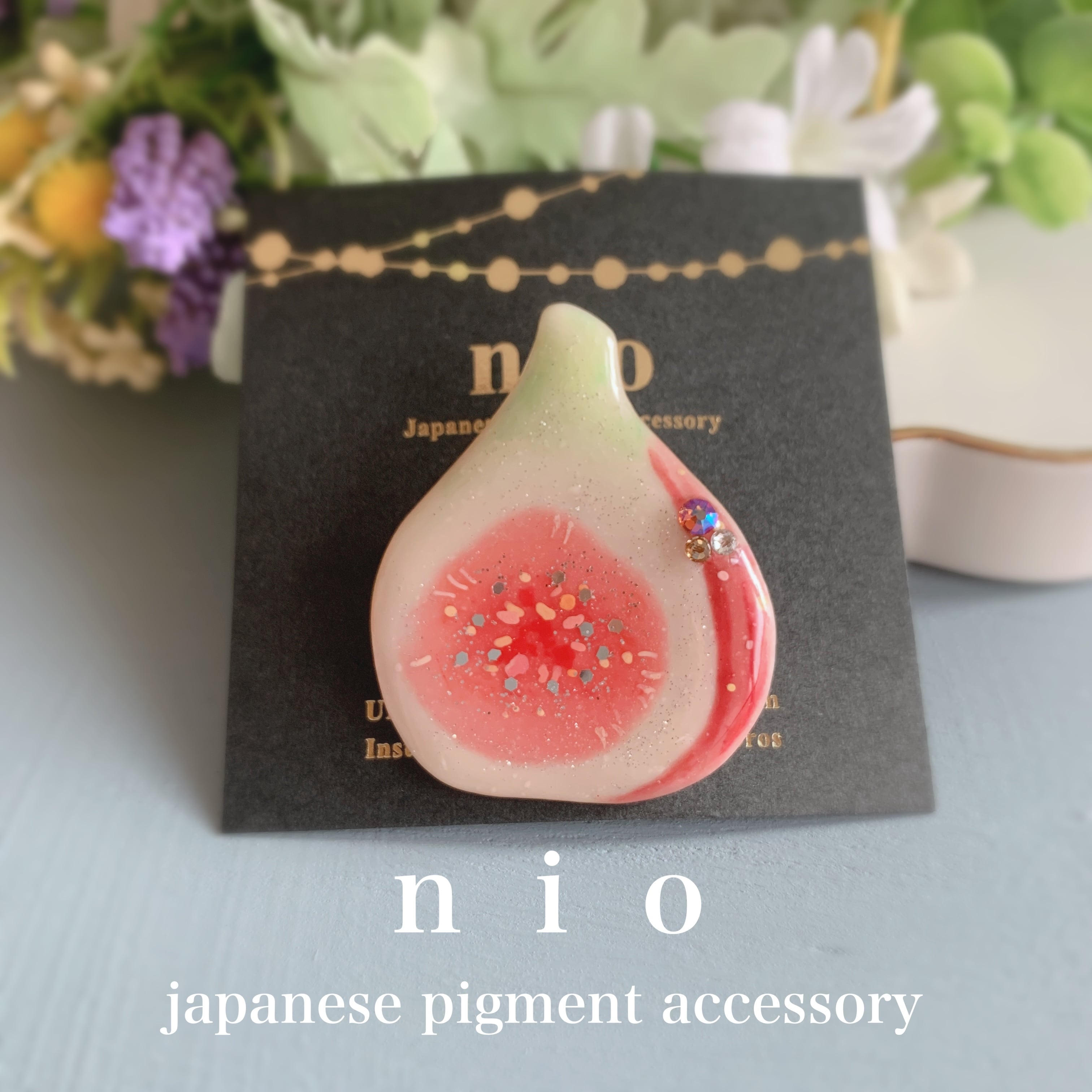 nioの店頭販売の時に、同じ商品が売場には無いかもしれませんが、ブローチの実物をご覧いただく事をお勧めします。