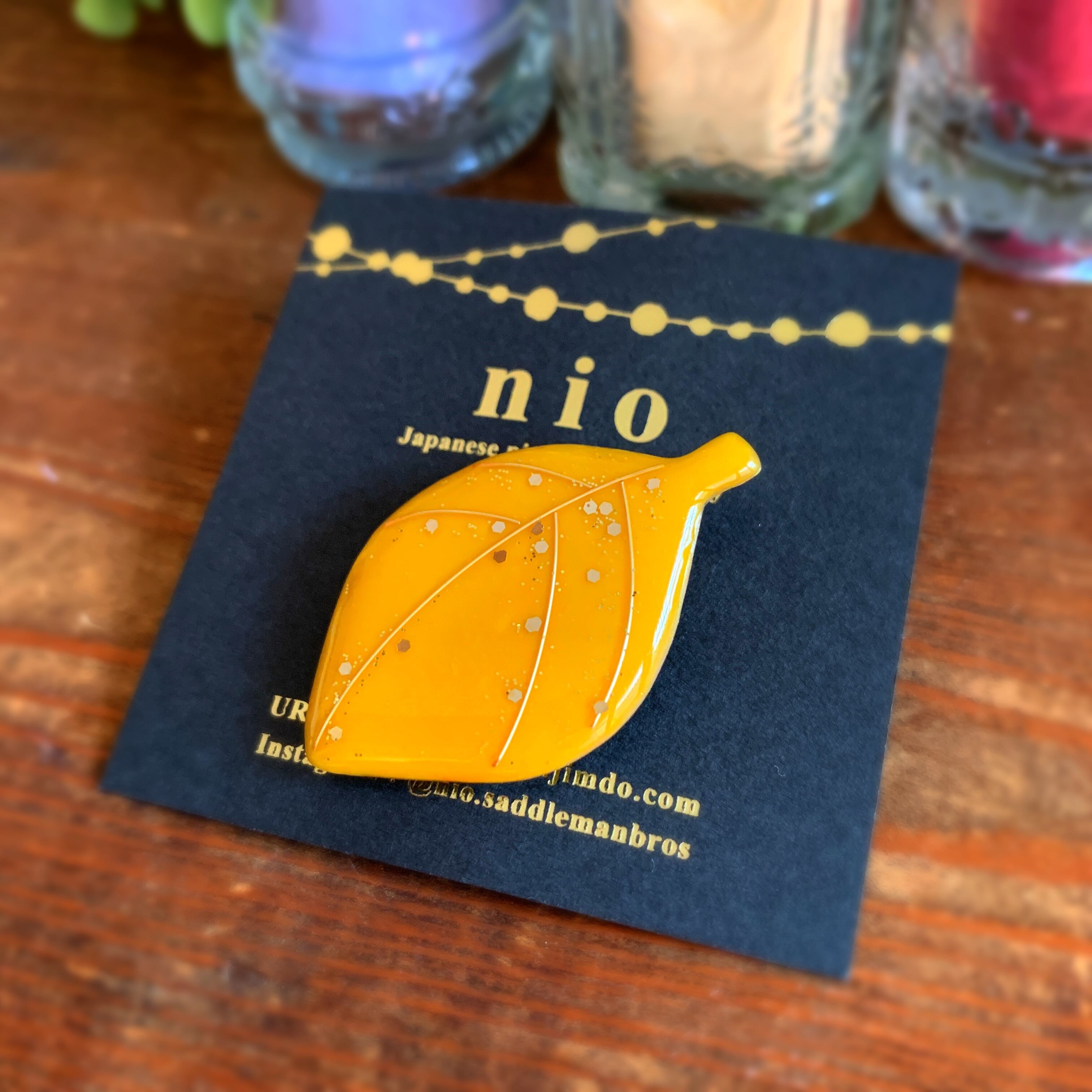 葉っぱブローチをひらひらと舞うように着けるのがオススメです♪