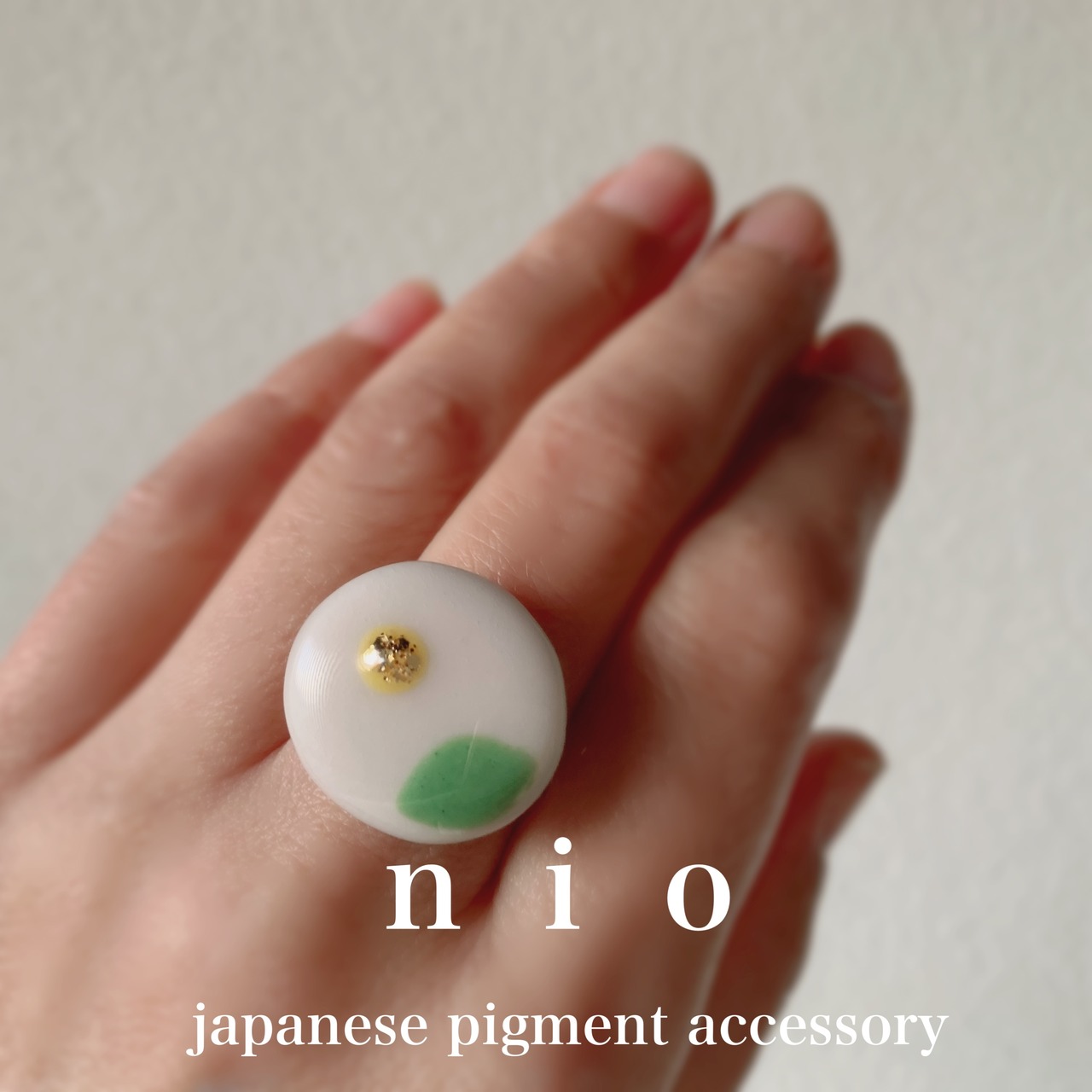 和菓子の練り切りの白椿をモチーフにして作ったリング
